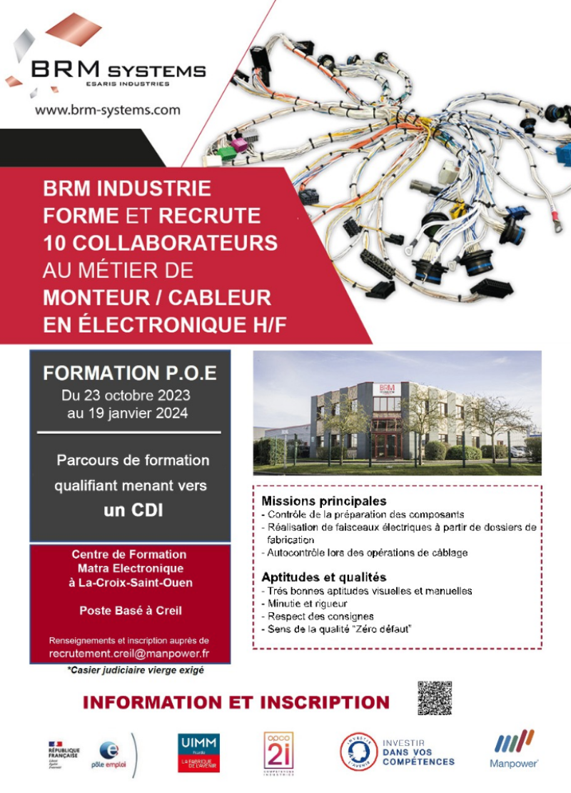 Cette année encore, notre site de Creil (60) forme et recrute 10 monteurs/câbleurs en électronique.